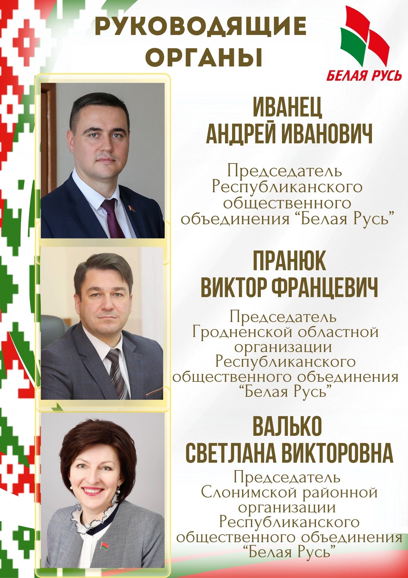 Содействие объединению прогрессивных сил общества на основе идеологии белорусского государства в интересах обеспечения политической социальной стабильности, динамичного экономического и духовного развития общества.